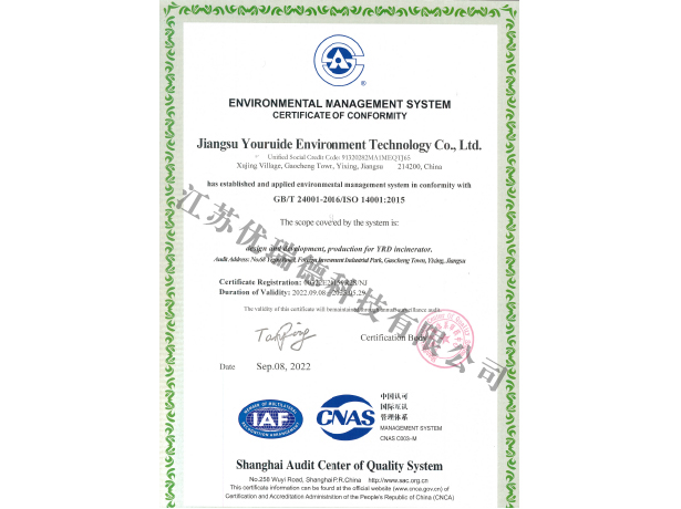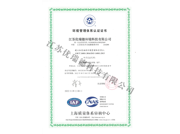 環境管理體系認證證書-中文