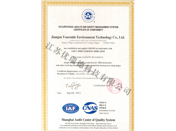 職業健康安全管理體系認證證書-英文